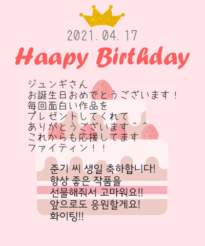みんなでジュンギさんのお誕生日を盛大にお祝いしましょう♪